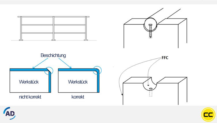 Ein weiterer unbedingt zu beachtender Aspekt ist, dass Pulverbeschichtungen permeabel sind. Die Salzsäure kann auf die Beschichtung einwirken. Wenn ein Tropfen Salzsäure auf die Beschichtung fällt, entstehen an dieser Stelle filiforme Effekte. Wenn während des Tropfens in den angebrachten Kratzer Kontakt mit der Beschichtung entsteht, kann sich dies auf die Testergebnisse auswirken.
