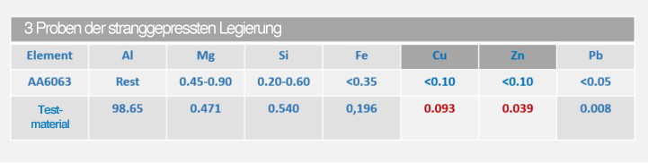 Tabelle 2: Proben der stranggepressten Legierung
