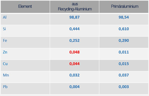 Bei einer früheren Untersuchung von AD Chemicals wurde bereits festgestellt, dass das Beizen ein wichtiger Faktor für die Verbesserung der Qualität der Vorbehandlung von Recycling-Aluminium ist. Darum wurden im Anschluss an die Untersuchung Tests mit Recycling-Aluminium durchgeführt, wobei ein Faktor des Behandlungsprozesses – das Beizen – geändert wurde. Auf diese Weise wurden verschiedene Werkstücke untersucht (siehe Tabelle 2), die den höchstzulässigen Gehalt an Kupfer aufwiesen. Darüber hinaus war Zink keinesfalls im Verhältnis 1:1 enthalten. Dies ist eine beim Strangpressen häufig verwendete Methode zum Ausgleich der Auswirkungen.